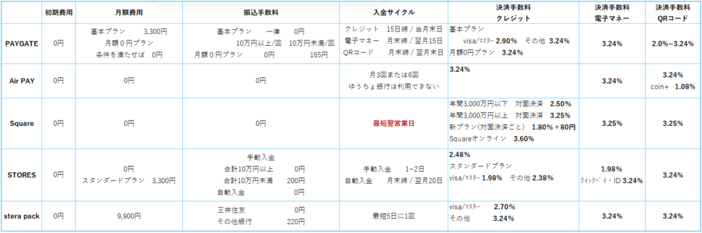 売上規模が大きくなるほど、手数料差が利益に直結するので大きな比較ポイントでもあります